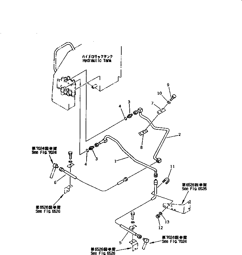 Запчасти гидролиния (цилиндр наклона линия) (шасси) бульдозеры гусеничные d21e-6 s/n 60001-up Komatsu