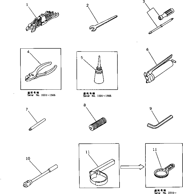 | 11 | 600-211-6290 | WRENCH,FILTER | |