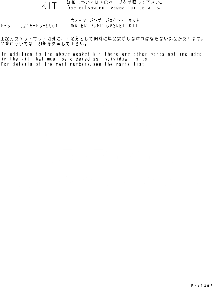 | 6 | 6215-K6-9901 | GASKET KIT,WATER PUMP | |