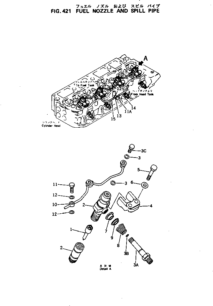 Запчасти топливн. форсунка и сливная трубка двигатели 4d105-2j s/n 30083-up Komatsu