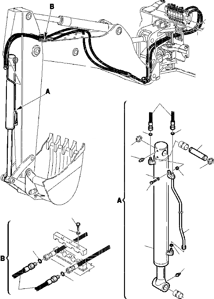 Запчасти fig. h7-a гидролиния - цилиндр ковша экскаваторы-погрузчики wb150ps-2n s/n a70001-a70009 Komatsu